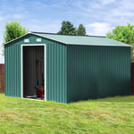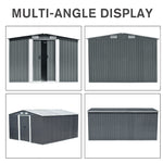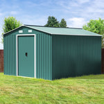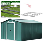 10x12 XL Garden Metal Shed Gable Roof Steel Outdoor Tool Storage with Floor Base