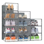 12PCS Stackable Shoe Box Clear Footwear Case Foldable Sneaker Storage Organiser
