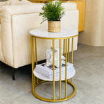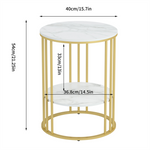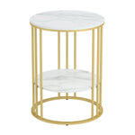 Beautiful Gold Round Marble Side Table Sofa End Table with 2 Tier Storage Shelf