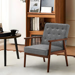 Buttoned Mid Back Armchair Upholstered Linen Tub Sofa Wood Frame Accent Chair UK