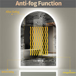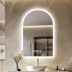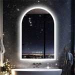 Arched Bathroom Mirror Backlit Frameless Lighted Wall Mirror w/ Temperature&Time